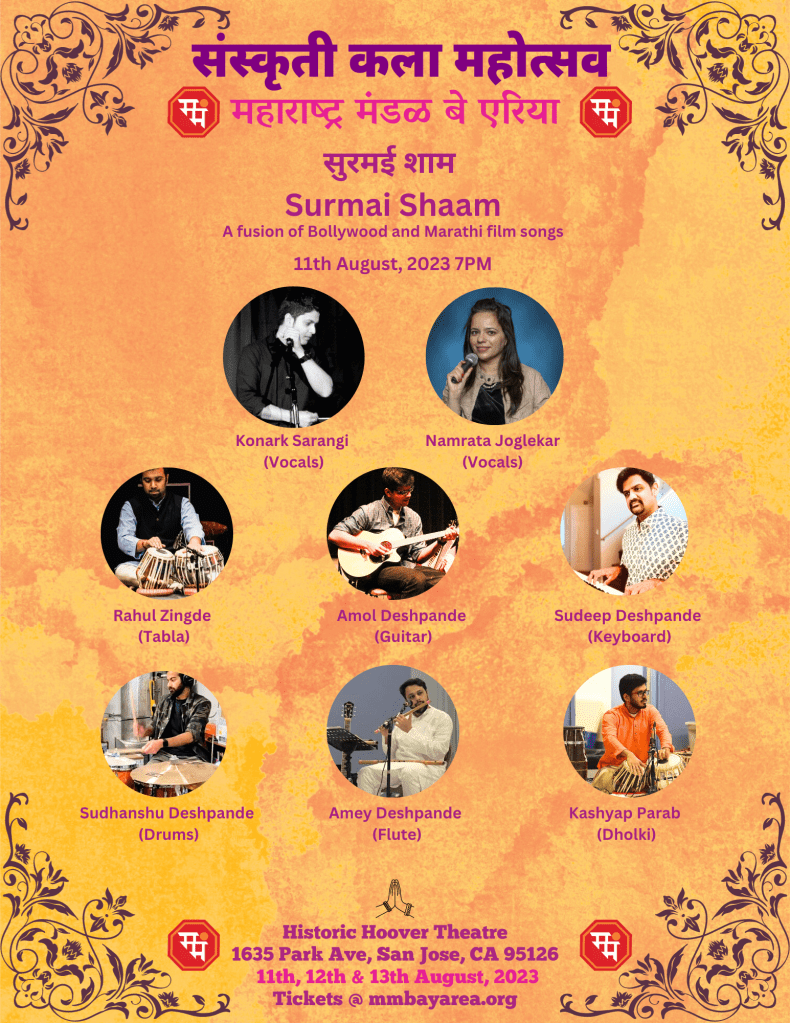 A concert to celebrate the soul stirring Hindi and Marathi melodies. Presented as part of “Sanskruti Kala Mahotsav”, hosted by Maharashtra Mandal Bay Area